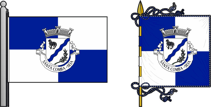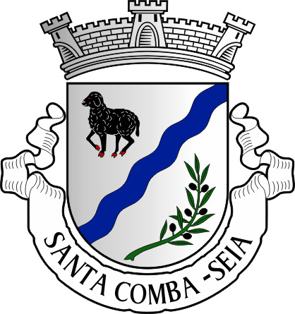 Armas - Escudo de prata, barra diminuta ondada, de azul, acompanhada de ovelha de negro, realçada de prata, animada e ungulada de vermelho e de ramo de oliveira de verde, frutado de negro. Coroa mural de prata de três torres. Listel branco, com a legenda a negro: “ SANTA COMBA - SEIA “.