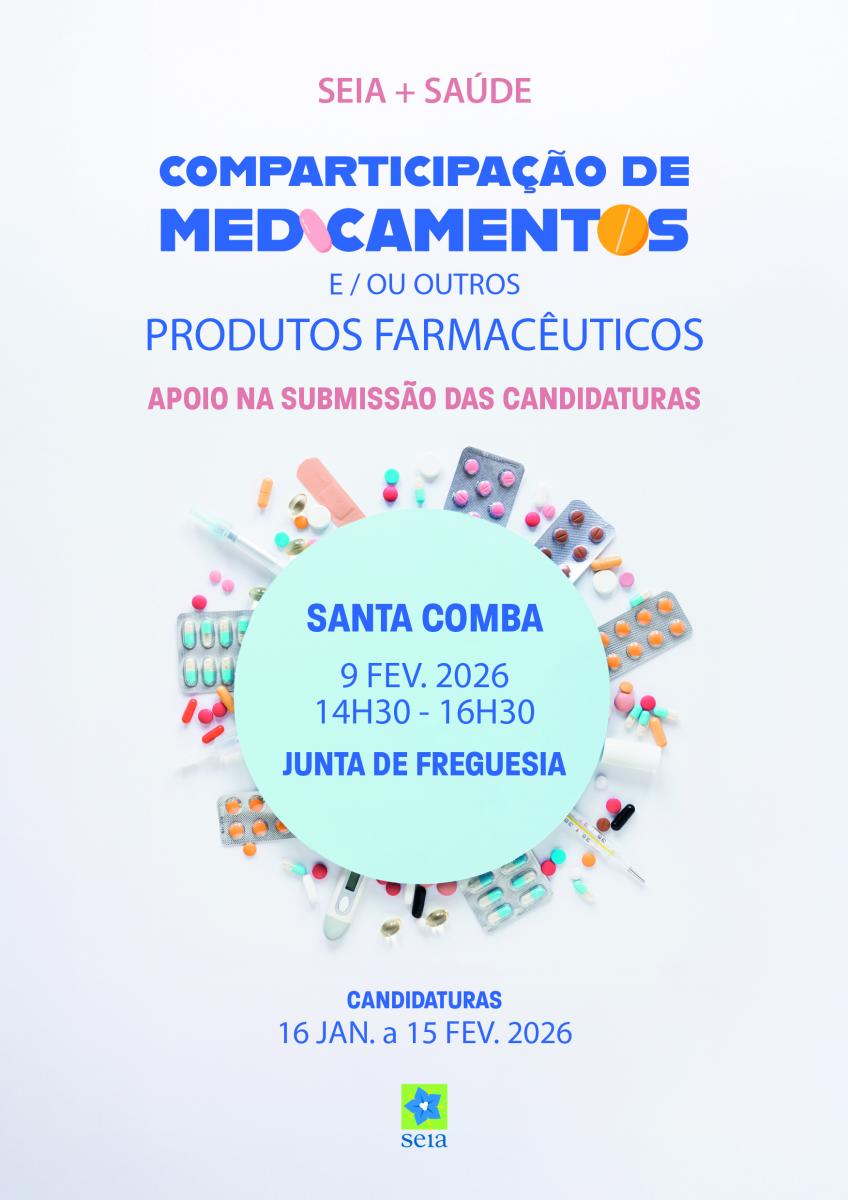 Irá decorrer no dia 9 de Fevereiro das 14h30 às 16h30 um apoio de submissão de candidaturas para comparticipação de medicamentos e/ou outros produtos farmacêuticos na Junta de Freguesia de Santa Comba.
